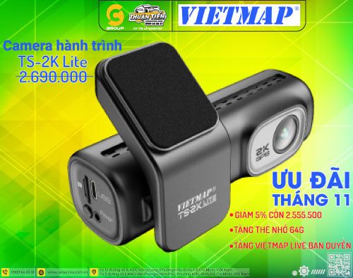 | Phụ kiện kèm theo | - Máy VIETMAP TS-2K LITE (trước + sau) - Giá đỡ 3M - Sạc nguồn ô tô - Thẻ nhớ 64GB U3 - Sách HDSD |